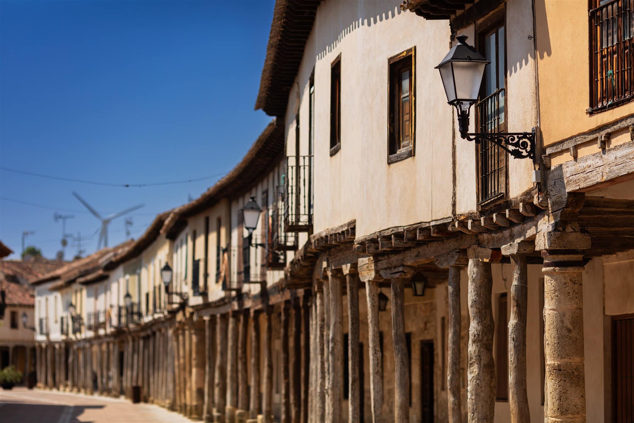 Vista diurna de una calle de Ampudia con luminarias Villa XLA.