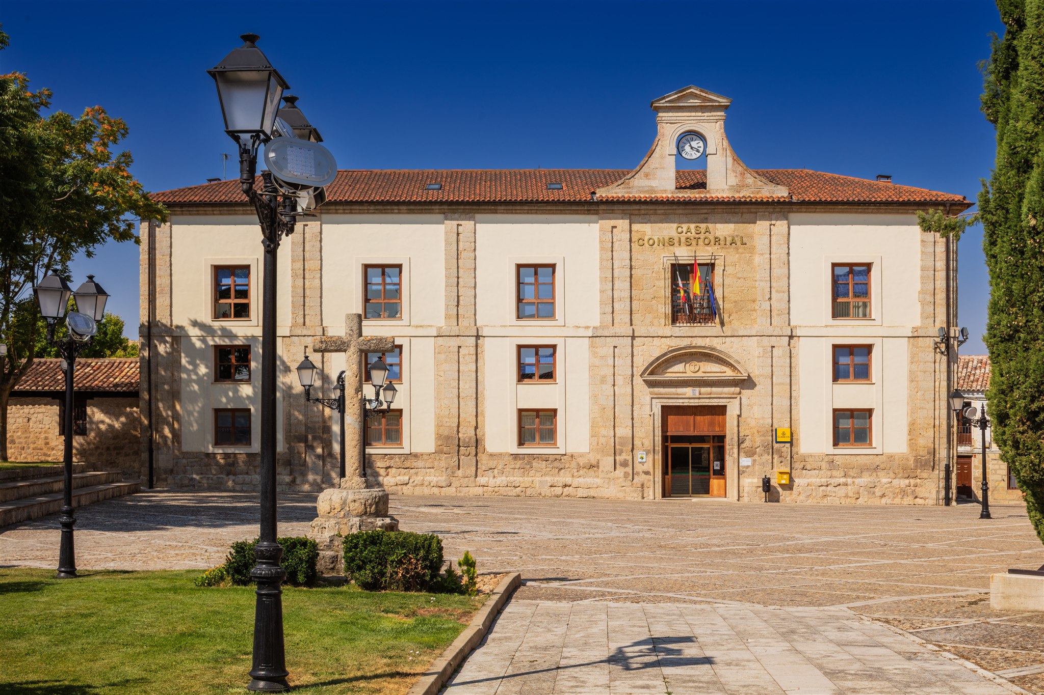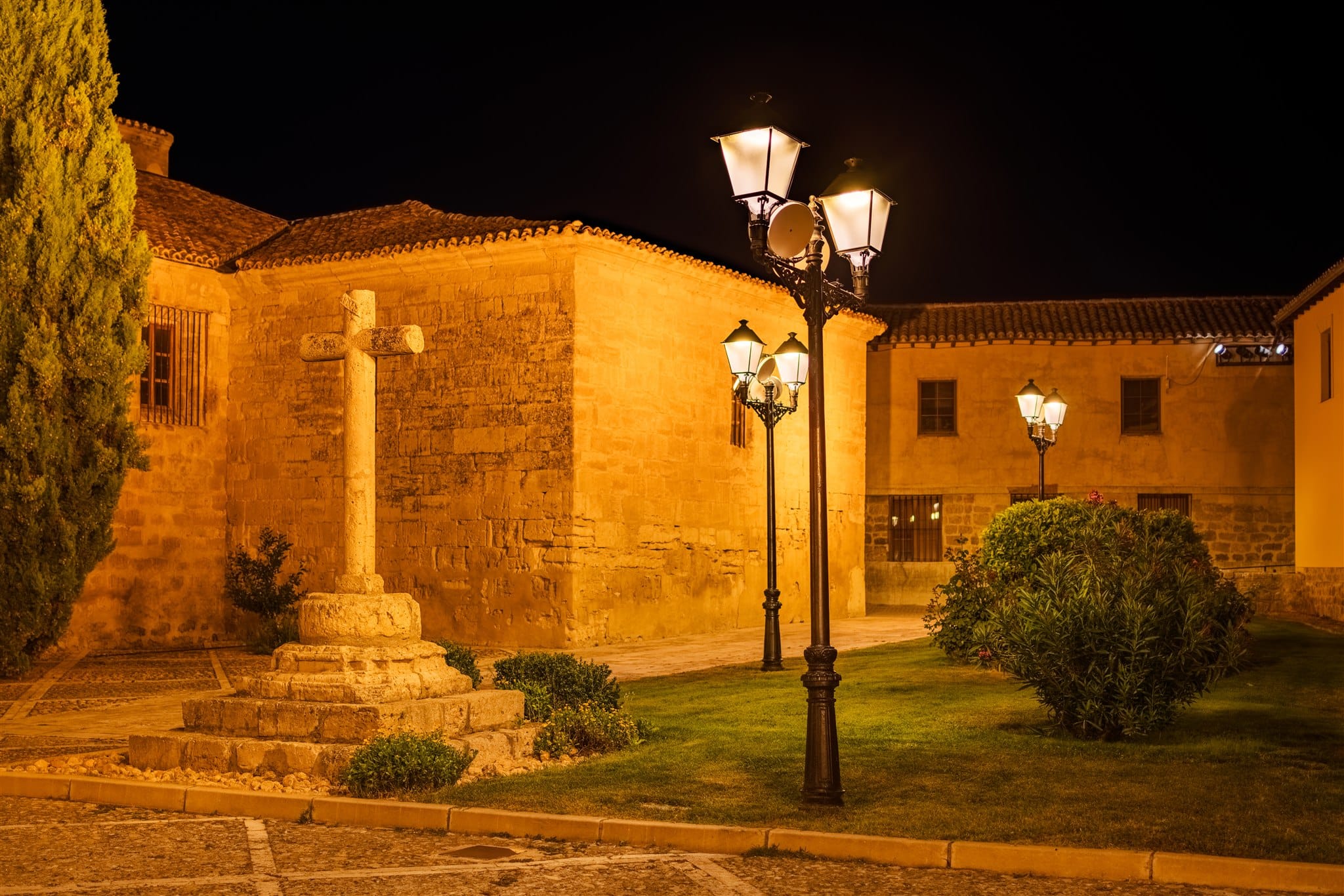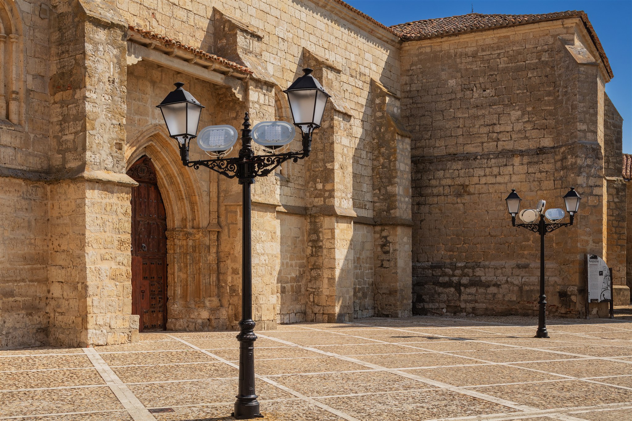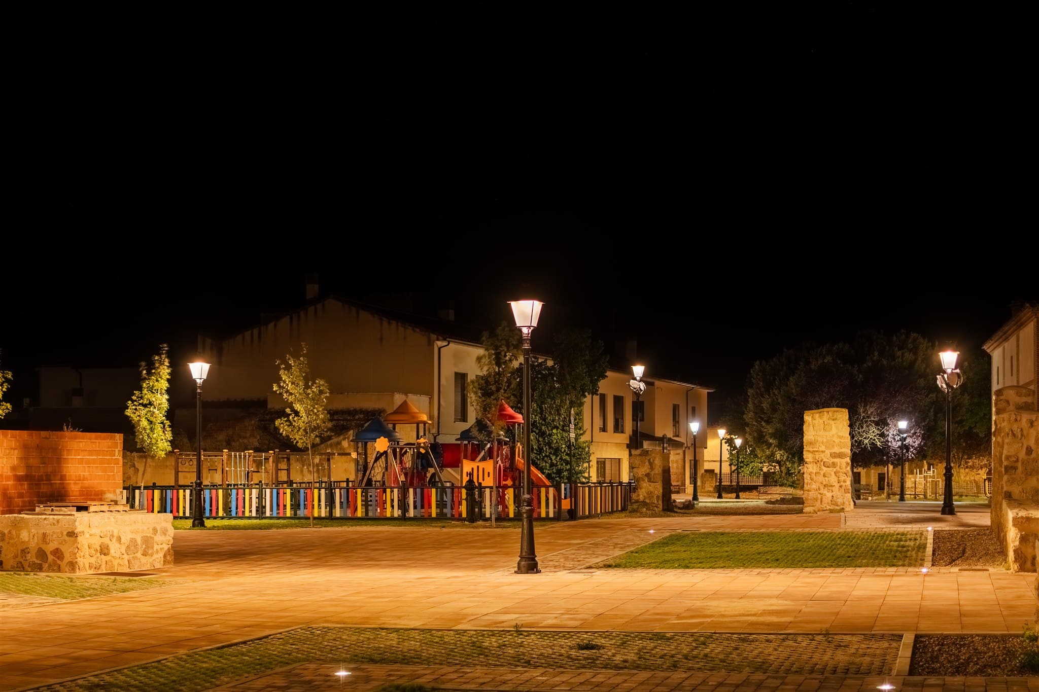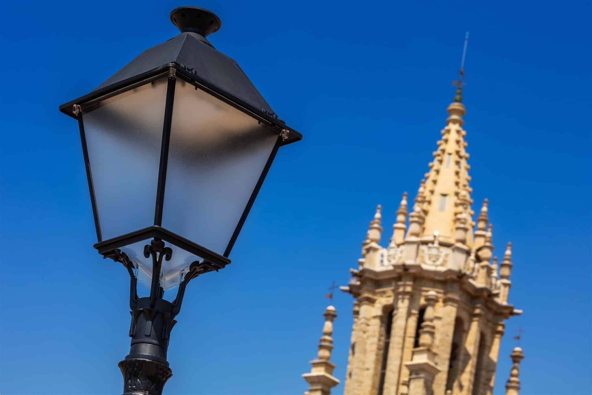 Luminarias ATP con proyectores Aire® Serie 5 instaladas en Ampudia, combinando estética clásica, perfecta. integración con la arquitectura del entorno y una durabilidad sin mantenimiento.