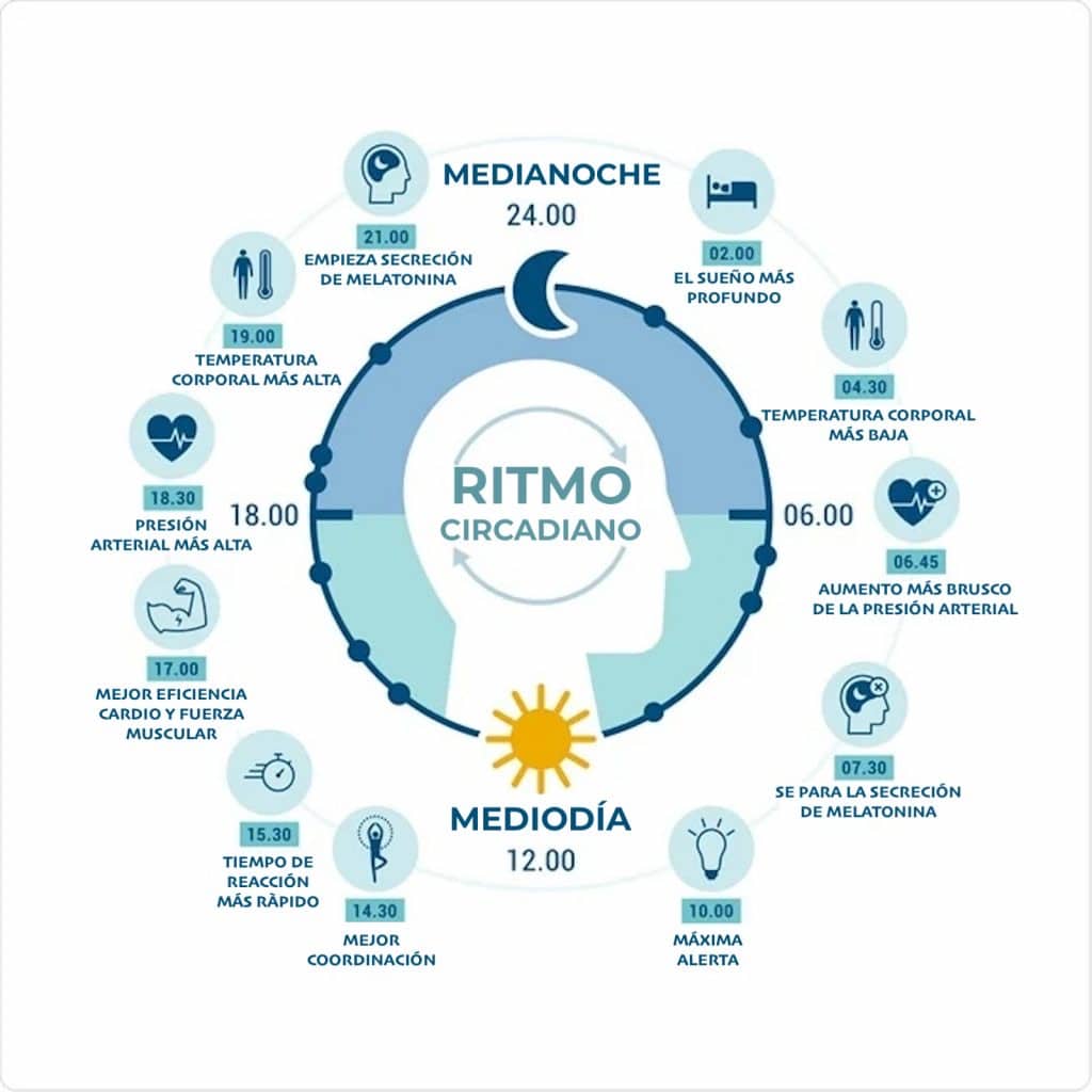 El ritmo circadiano regula los ciclos biológicos diarios, siendo altamente sensible a la exposición a la luz, especialmente en el espectro azul.