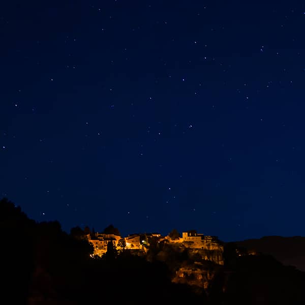 Siurana (Tarragona) bajo un cielo estrellado, ejemplo de iluminación respetuosa con los ritmos circadianos y la biodiversidad.