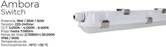 En este tipo de instalaciones, la iluminación no admite concesiones. Requiere resistencia frente a condiciones exigentes, estabilidad en el rendimiento y facilidad de instalación. AMBORA SWITCH responde a estas necesidades con una construcción robusta y prestaciones técnicas de alto nivel.