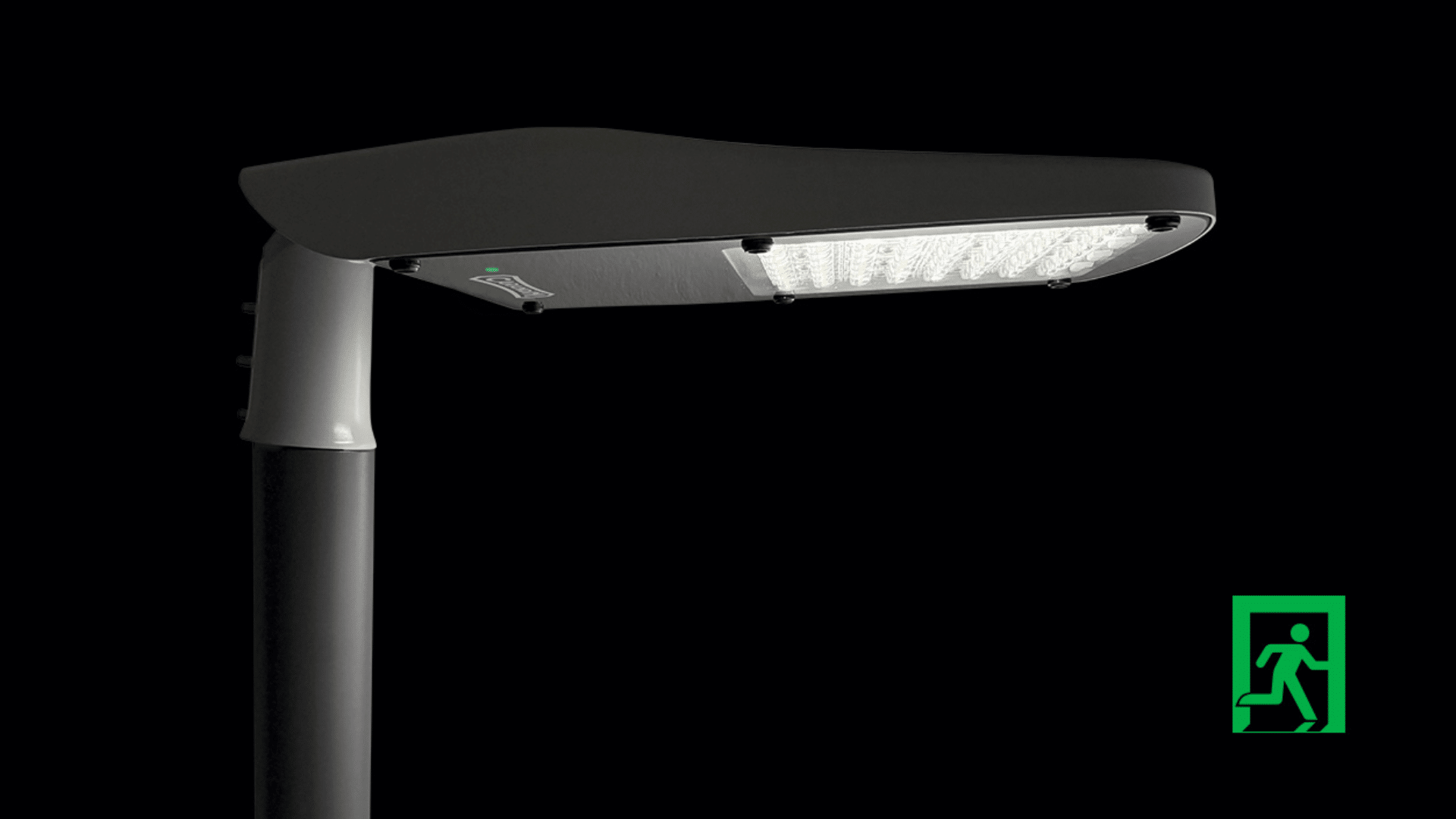 Está certificada conforme a la normativa IEC 60598-2-22 para luminarias viales de emergencia, y dispone de una batería de respaldo que mantiene la zona iluminada durante 1, 2 o 3 horas —según la configuración seleccionada—. De este modo, asegura la visibilidad, una evacuación segura y la continuidad operativa incluso en los escenarios más críticos.