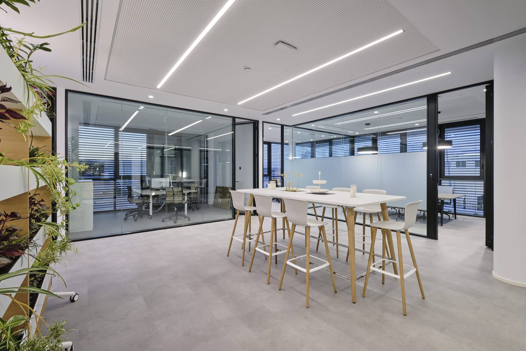 El resultado es un proyecto lumínico de última generación, completamente integrado en el sistema de control del edificio KNX, que garantiza un consumo optimizado, mayor confort visual y una atmósfera de trabajo saludable.